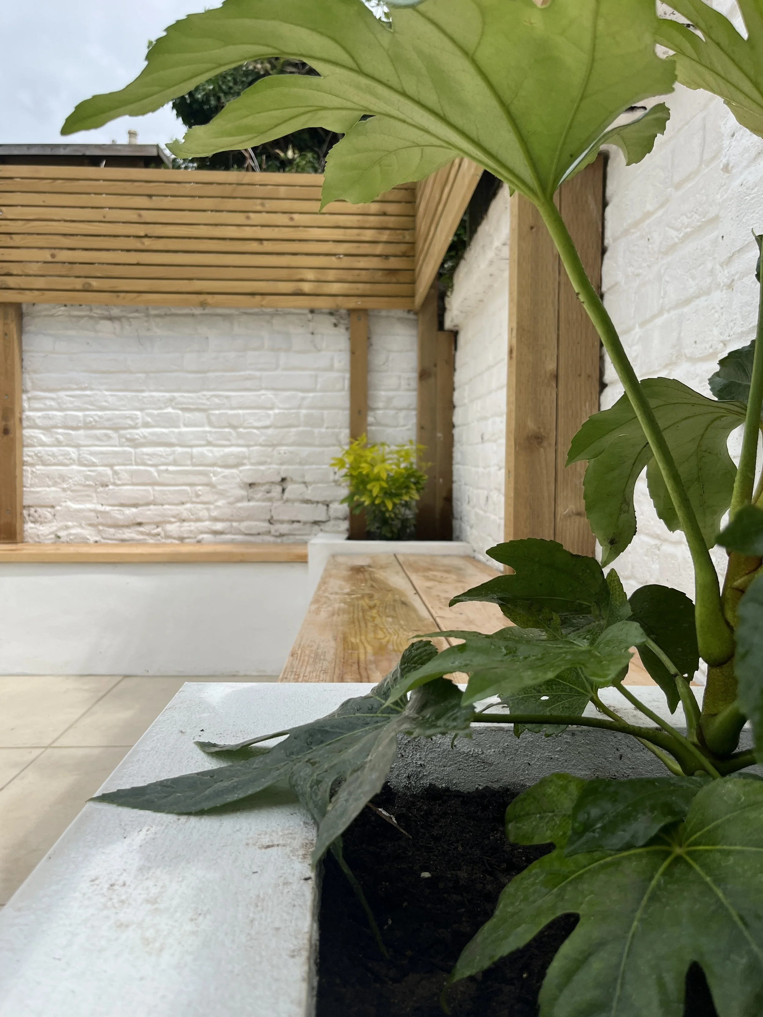 Planting: Shade tolerant shrubs such as Fatsia, Choisya and ferns in shady areas
