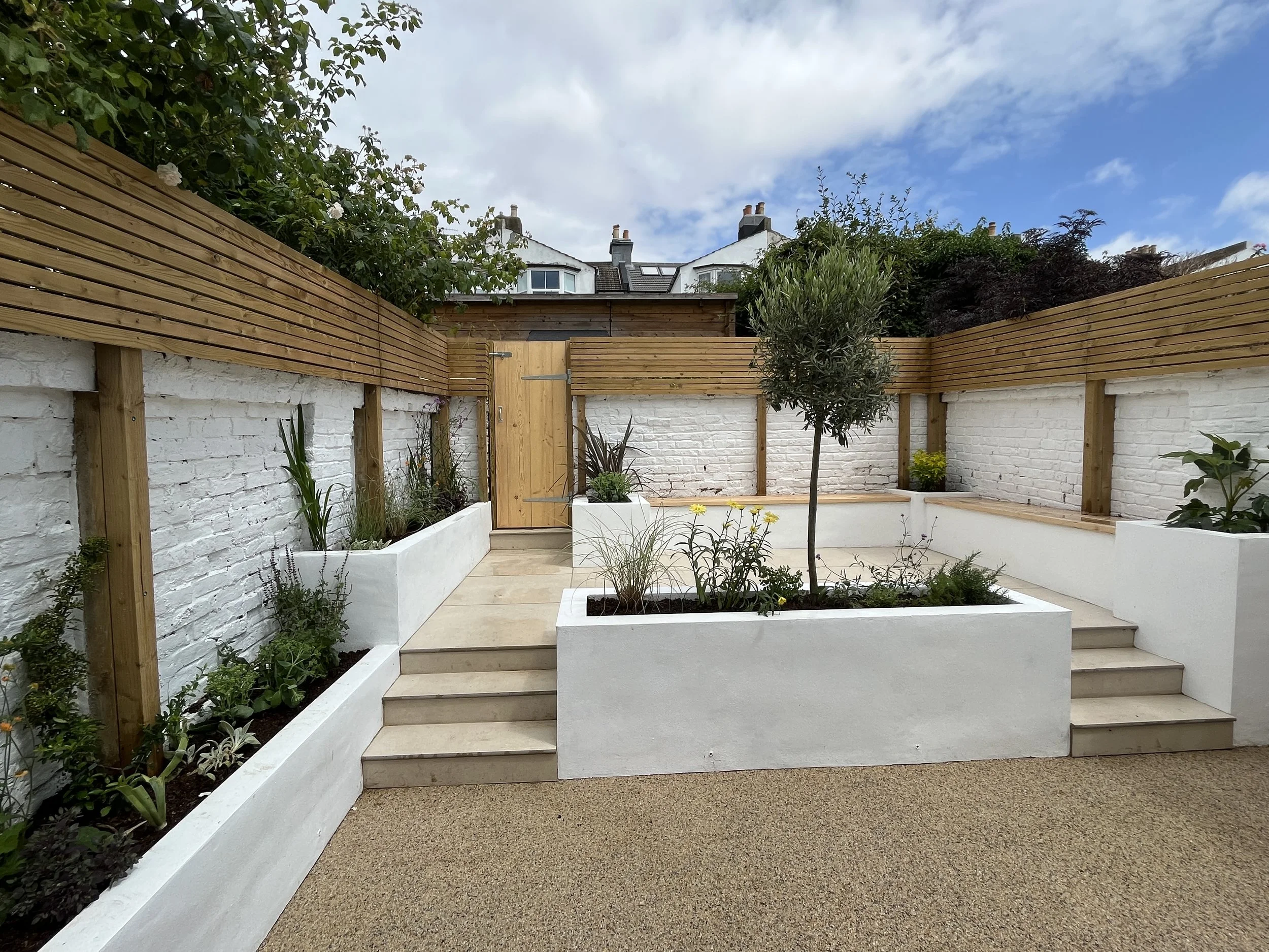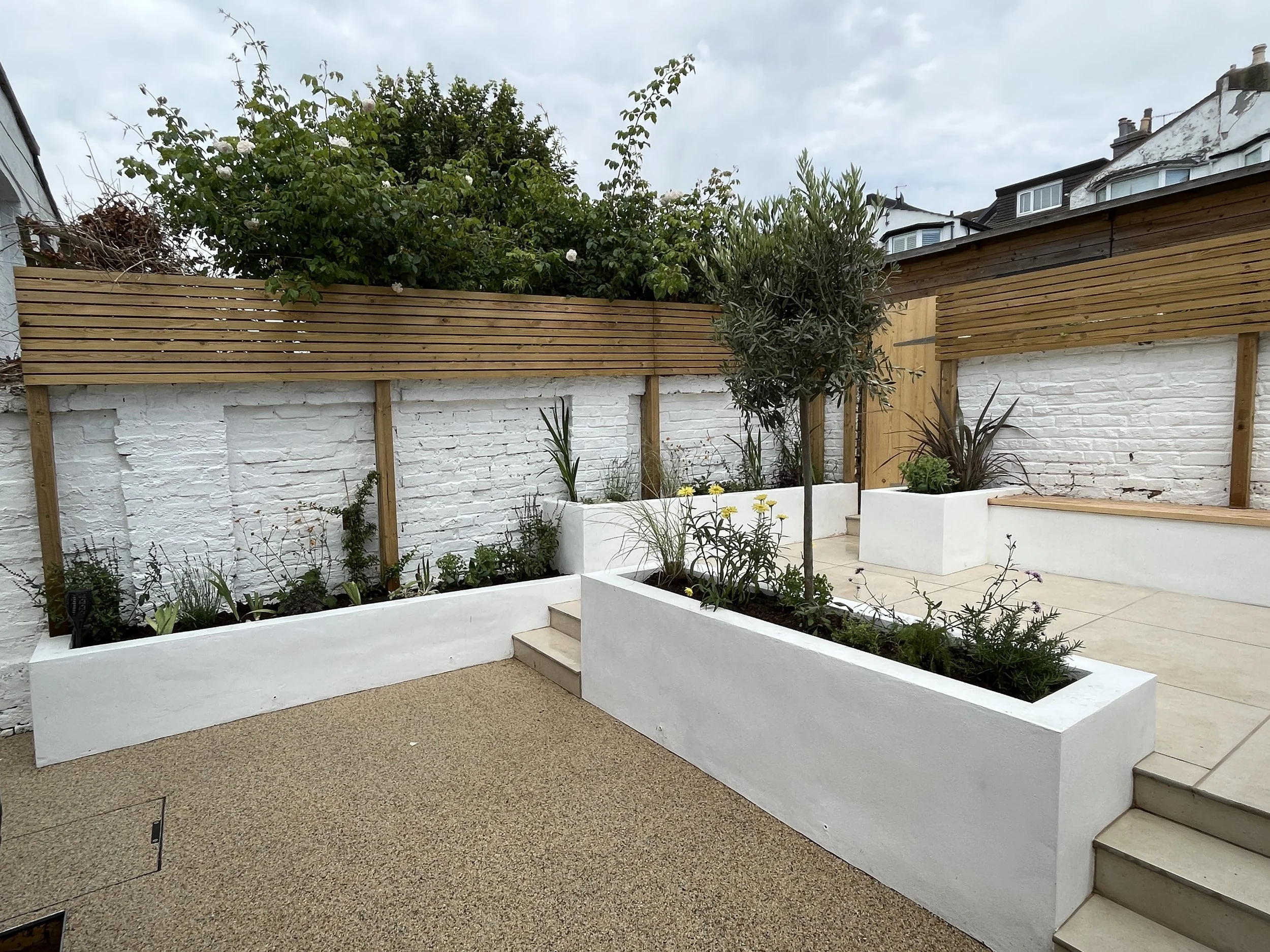 The existing garden was split into 3 levels stepping uphill but the lack of formal zoning made it feel muddled and unloved. There were also big problems with damp at the rear of the building, a problem which needed urgent attention.
